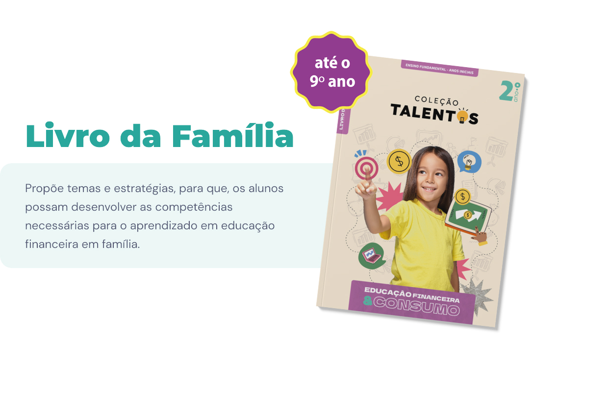 A coleção Talentos possui dois principais materiais, um voltado para Empreendedorismo & Projeto de Vida e outro para Educação Financeira & Consumo. |
